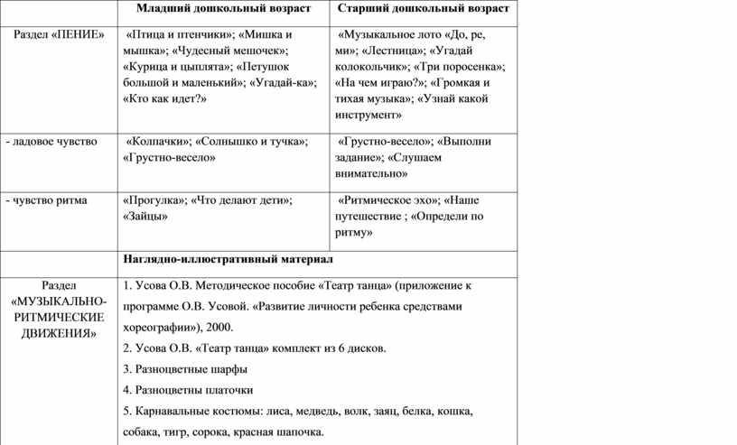 Раздел «ТВОРЧЕСТВО»: песенное, музыкально-игровое, танцевальное,
