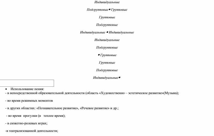 Специально подобранный музыкальный репертуар позволяет обеспечить рациональное сочетание и смену видов музыкальной деятельности, предупредить утомляемость и сохранить активность ребенка на музыкальном занятии.