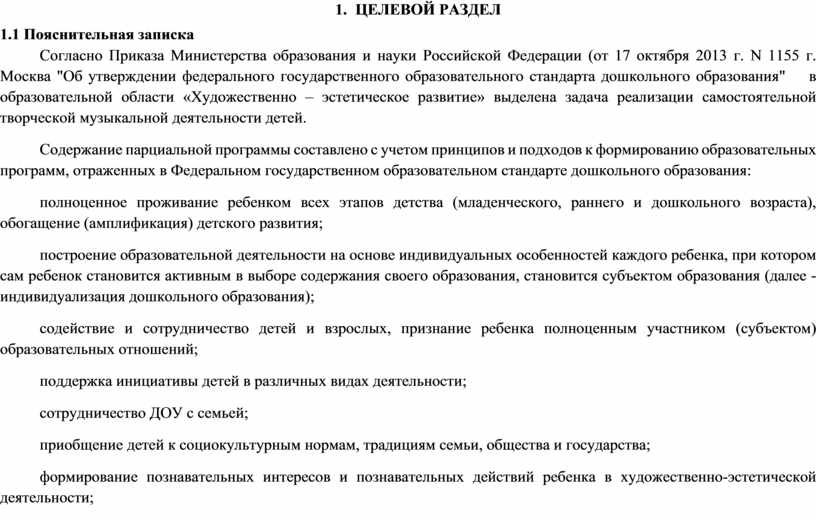 Согласно Приказа Министерства образования и науки Российской Федерации (от 17 октября 2013 г. N 1155 г. Москва "Об утверждении федерального государственного образовательного стандарта дошкольного образования" в образовательной области «Художественно – эстетическое развитие» выделена задача реализации самостоятельной творческой музыкальной деятельности детей.