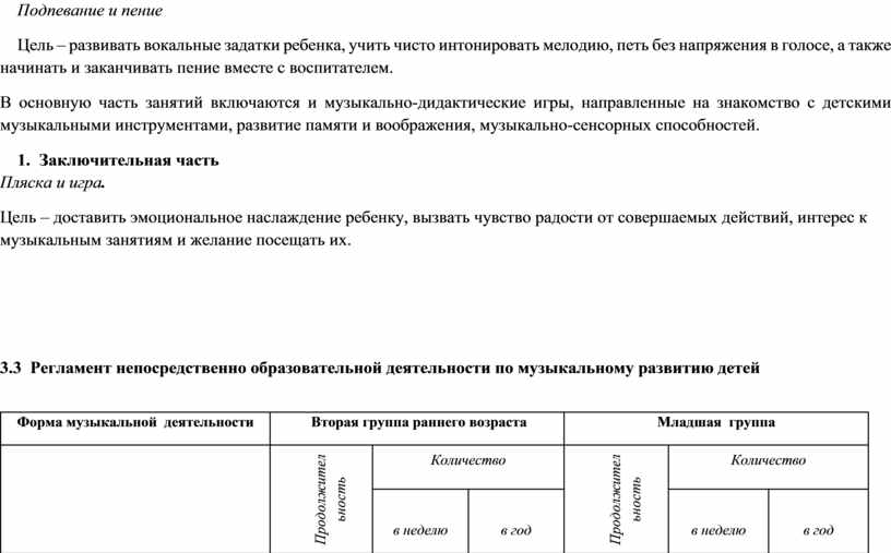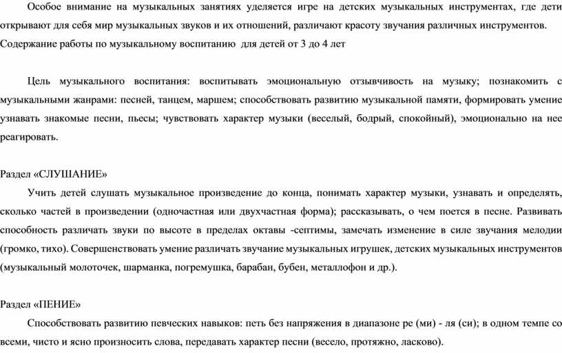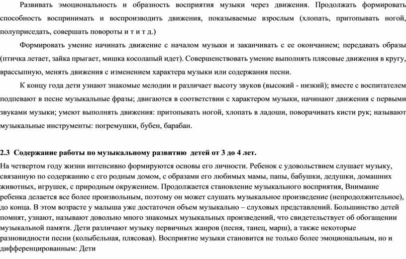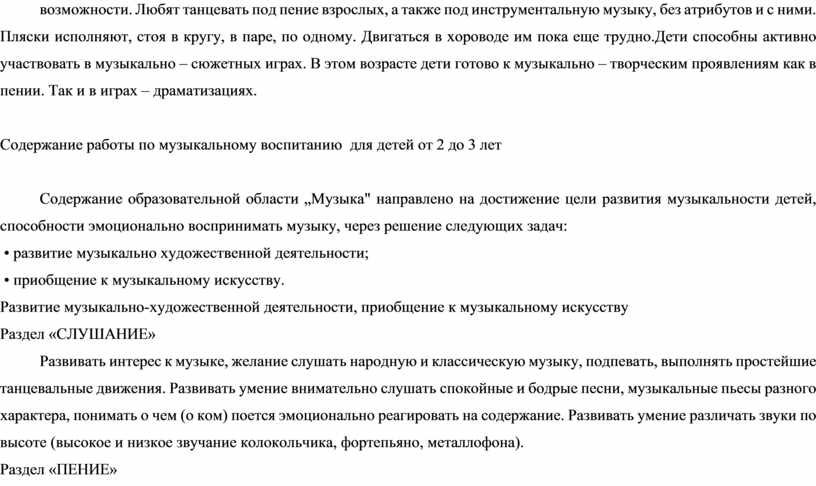 Содержание работы по музыкальному воспитанию для детей от 2 до 3 лет