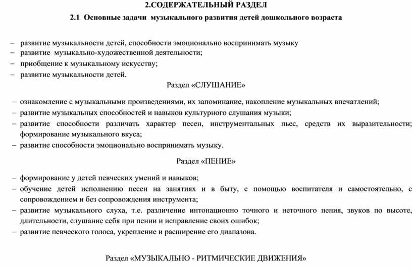 2.1 Основные задачи музыкального развития детей дошкольного возраста