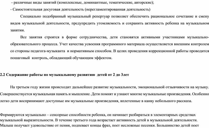 2.2 Содержание работы по музыкальному развитию детей от 2 до 3лет
