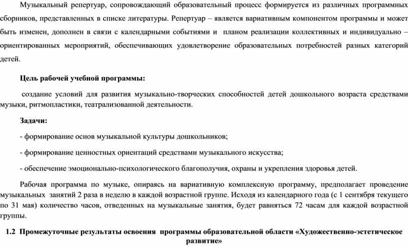 1.2 Промежуточные результаты освоения программы образовательной области «Художественно-эстетическое развитие»