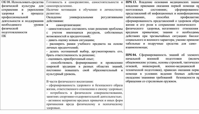 ОК 08. Использовать средства физической культуры для сохранения и укрепления здоровья в процессе профессиональной деятельности и поддержания необходимого уровня физической подготовленности |