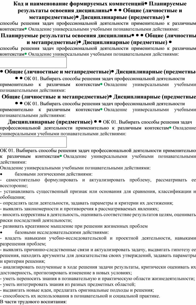 ОК 01. Выбирать способы решения задач профессиональной деятельности применительно к различным контекстам |