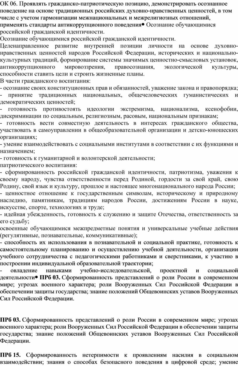 ОК 06. Проявлять гражданско-патриотическую позицию, демонстрировать осознанное поведение на основе традиционных российских духовно-нравственных ценностей, в том числе с учетом гармонизации межнациональных и межрелигиозных отношений, применять стандарты антикоррупционного поведения |