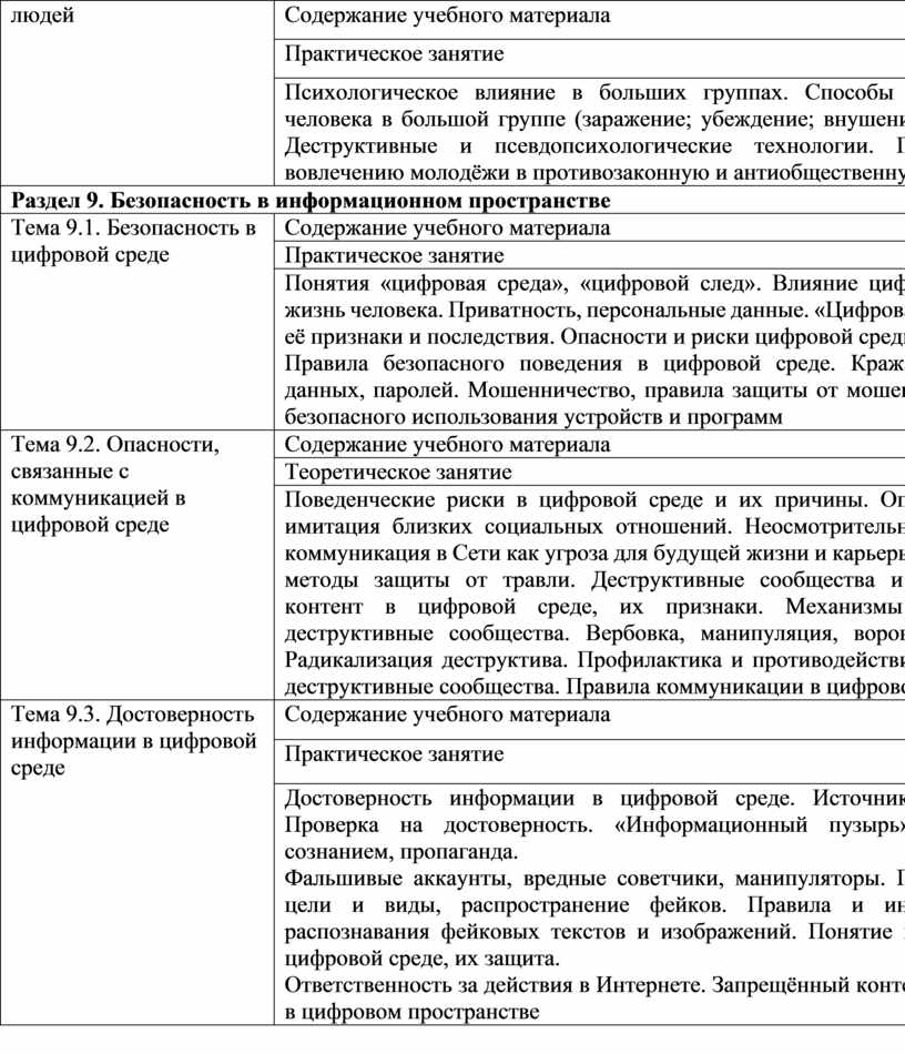 Раздел 1. Безопасное и устойчивое развитие личности, общества, государства |