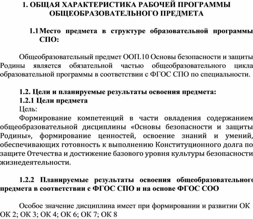 1. ОБЩАЯ ХАРАКТЕРИСТИКА РАБОЧЕЙ ПРОГРАММЫ ОБЩЕОБРАЗОВАТЕЛЬНОГО ПРЕДМЕТА