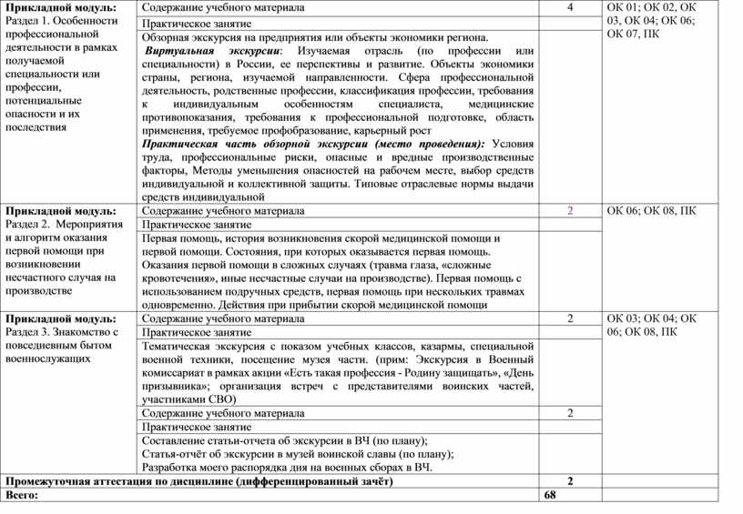 ОК 01; ОК 03; ОК 06; ОК 07; ОК 08 |