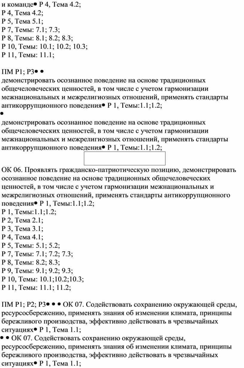 Р 4, Тема 4.2; Р 5, Тема 5.1; Р 7, Темы: 7.1; 7.3; Р 8, Темы: 8.1; 8.2; 8.3; Р 10, Темы: 10.1; 10.2; 10.3; Р 11, Темы: 11.1;