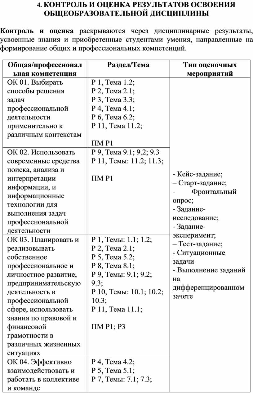 4. КОНТРОЛЬ И ОЦЕНКА РЕЗУЛЬТАТОВ ОСВОЕНИЯ ОБЩЕОБРАЗОВАТЕЛЬНОЙ ДИСЦИПЛИНЫ