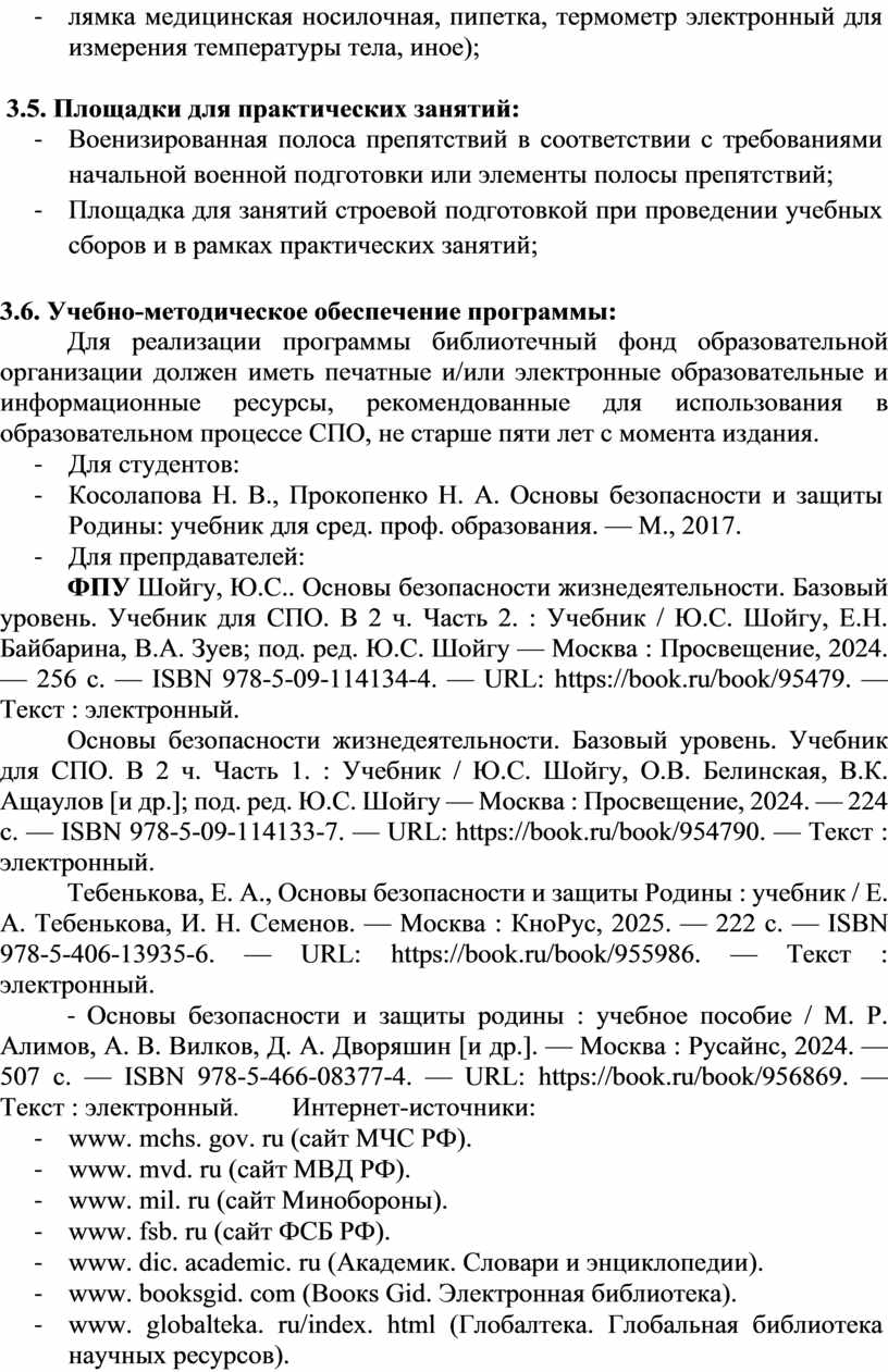 ФПУ Шойгу, Ю.С.. Основы безопасности жизнедеятельности. Базовый уровень. Учебник для СПО. В 2 ч. Часть 2. : Учебник / Ю.С. Шойгу, Е.Н. Байбарина, В.А. Зуев; под. ред. Ю.С. Шойгу — Москва : Просвещение, 2024. — 256 с. — ISBN 978-5-09-114134-4. — URL: https://book.ru/book/95479. — Текст : электронный.