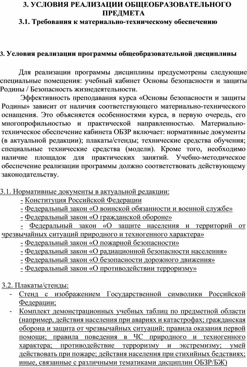3. условия реализации ОБЩЕОБРАЗОВАТЕЛЬНОГО ПРЕДМЕТА