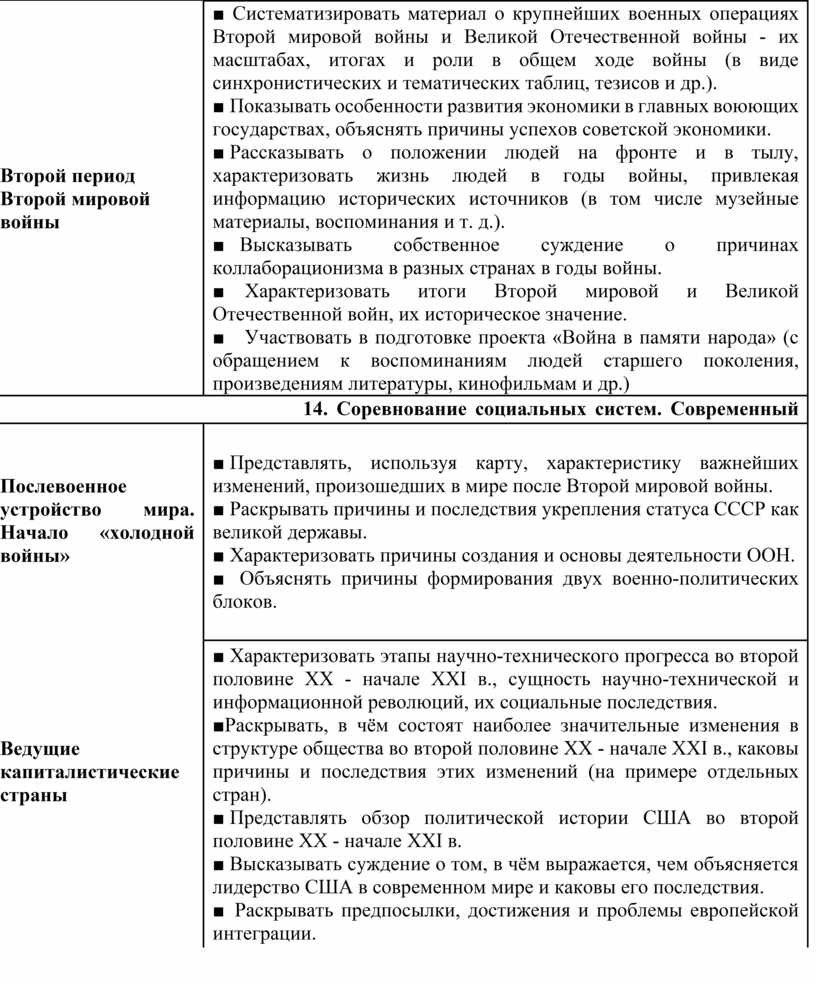 ■ Объяснять сущность «холодной войны», ее влияния на историю второй половины XX в. ■ Характеризовать основные периоды и тенденции развития международных отношений в 1945 г. - начале XXI в. ■ Рассказывать, используя карту, о международных кризисах 1 940-х - 1960-х гг. ■ Объяснять и применять в историческом контексте понятия биполярный мир, «холодная война», «железный занавес», НАТО, СЭВ, ОВД, международные кризисы, разрядка международной напряженности, «новое политическое мышление», региональная интеграция, глобализация. ■ Участвовать в обсуждении событий современной международной жизни (с привлечением материалов СМИ). |