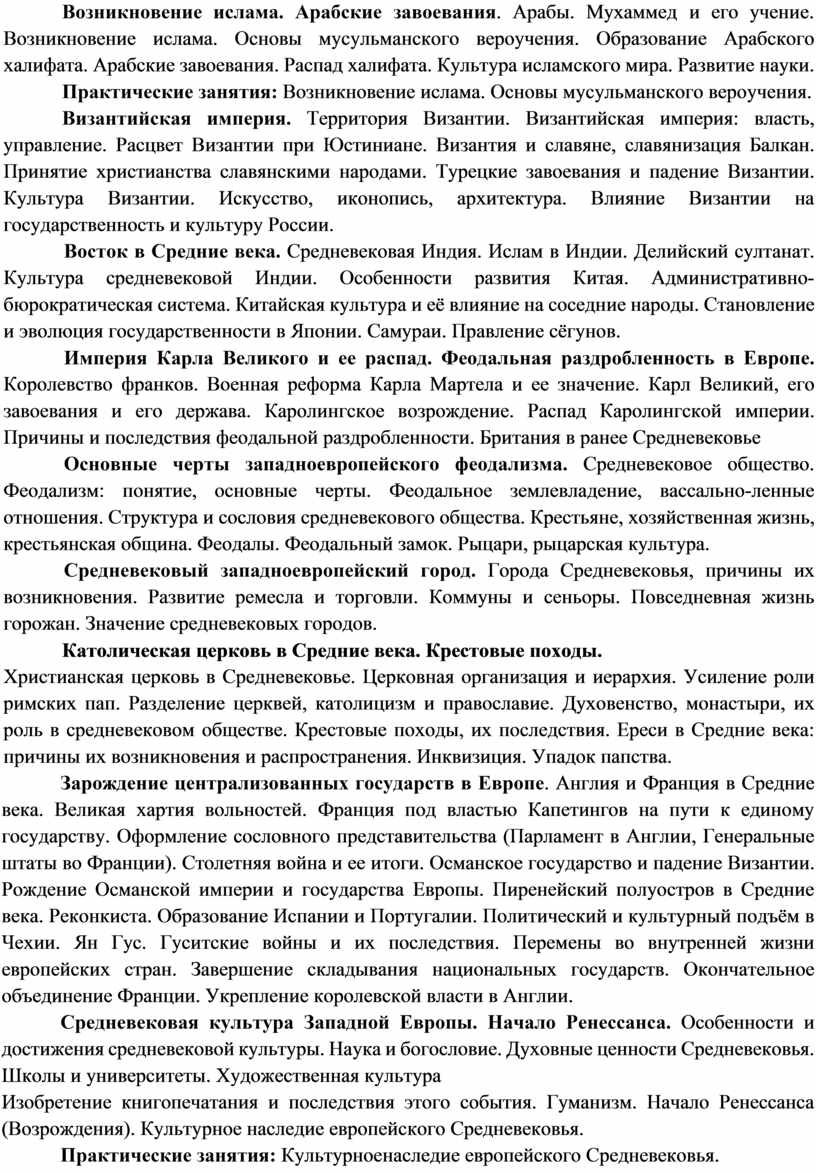 Основой учебной дисциплины «История» являются содержательные линии: историческое время, историческое пространство и историческое движение. В разделе программе «Содержание учебной дисциплины» они представлены как сквозные содержательные линии: