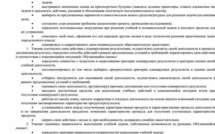 · выстраивать жизненные планы на краткосрочное будущее (заявлять целевые ориентиры, ставить адекватные им задачи и предлагать действия, указывая и обосновывая логическую последовательность шагов);