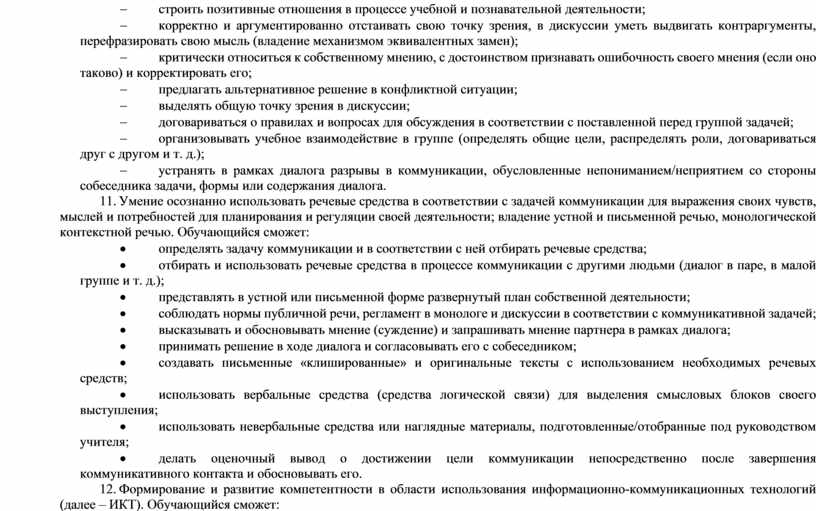 13. Формирование и развитие компетентности в области использования информационно-коммуникационных технологий (далее – ИКТ). Обучающийся сможет: