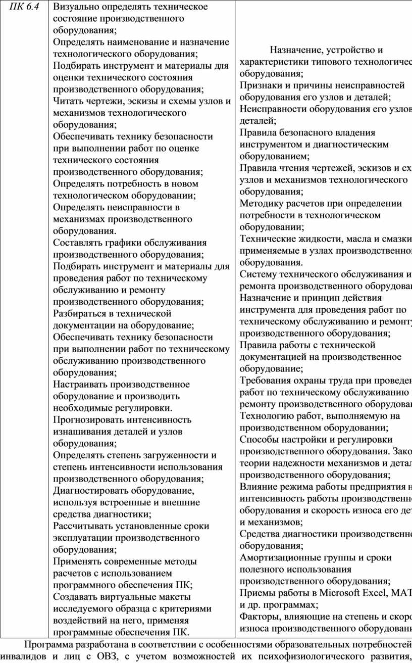 Программа разработана в соответствии с особенностями образовательных потребностей инвалидов и лиц с ОВЗ, с учетом возможностей их психофизиологического развития, индивидуальных возможностей и методических рекомендаций по разработке и реализации адаптированных образовательных программ среднего профессионального образования, утвержденные Департаментом государственной политики в сфере подготовки рабочих кадров и ДПО Науки России от 20 апреля 2015 г. № 06-830.