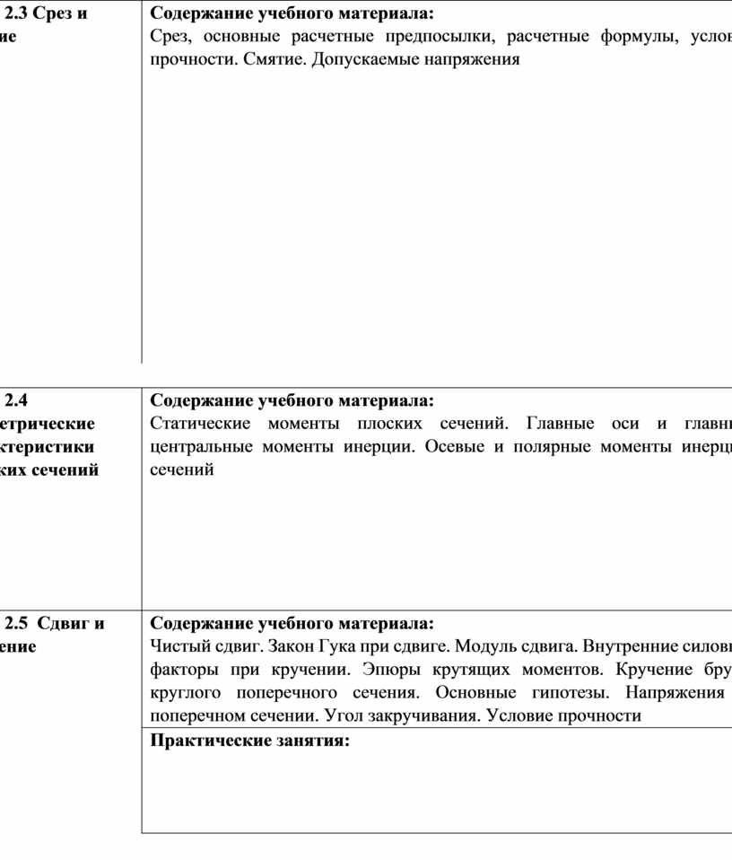 Содержание учебного материала: Чистый сдвиг. Закон Гука при сдвиге. Модуль сдвига. Внутренние силовые факторы при кручении. Эпюры крутящих моментов. Кручение бруса круглого поперечного сечения. Основные гипотезы. Напряжения в поперечном сечении. Угол закручивания. Условие прочности |
