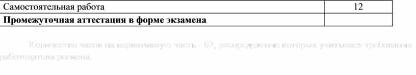 Количество часов на вариативную часть - 62, распределение которых учитывает требования