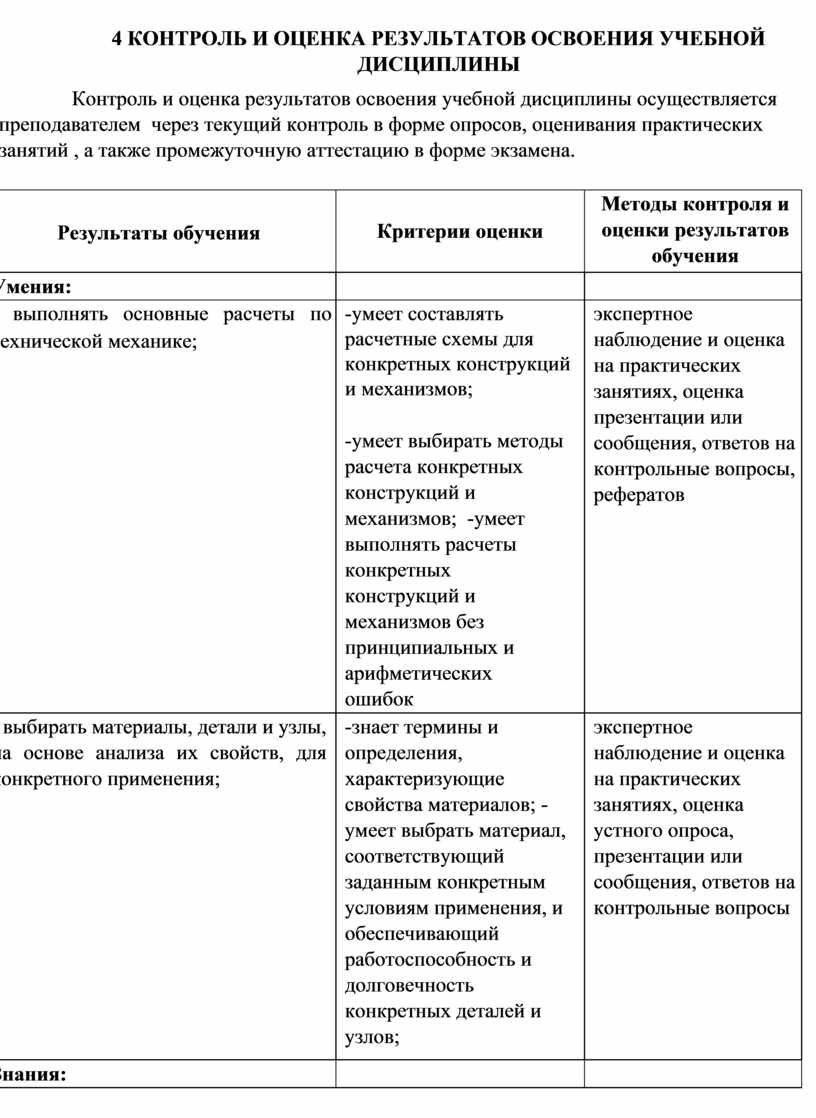 уметь: - выполнять основные расчеты по технической механике; - выбирать материалы, детали и узлы, на основе анализа их свойств, для конкретного применения; |