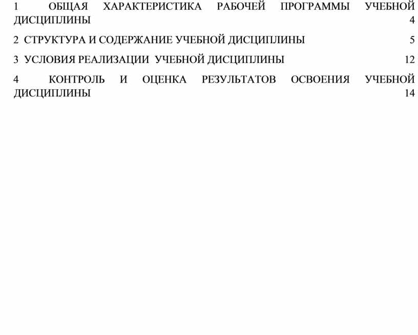 1 ОБЩАЯ ХАРАКТЕРИСТИКА РАБОЧЕЙ ПРОГРАММЫ УЧЕБНОЙ ДИСЦИПЛИНЫ 4
