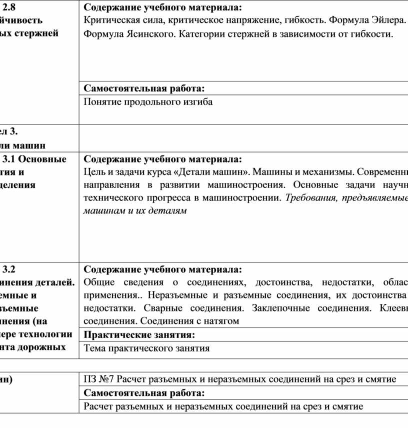 Содержание учебного материала: Критическая сила, критическое напряжение, гибкость. Формула Эйлера. Формула Ясинского. Категории стержней в зависимости от гибкости. |