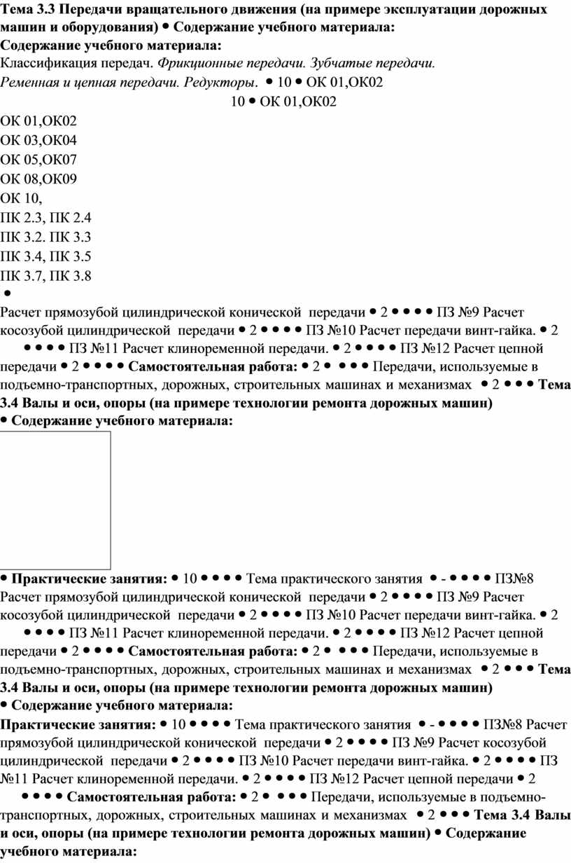 Тема 3.3 Передачи вращательного движения (на примере эксплуатации дорожных машин и оборудования) |