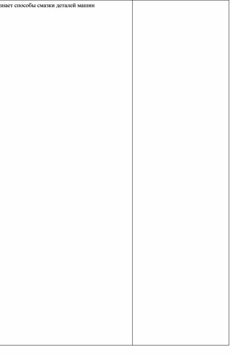 -знает геометрические характеристики рельса и других прокатных профилей; -знает способы смазки деталей машин |