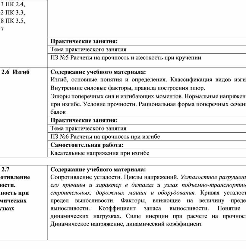 - основы теоретической механики, сопротивления материалов, деталей машин; центр тяжести стандартных прокатных профилей, устойчивость к опрокидыванию, преобразование движений, растяжение и сжатие, усталостное разрушение, передачи |