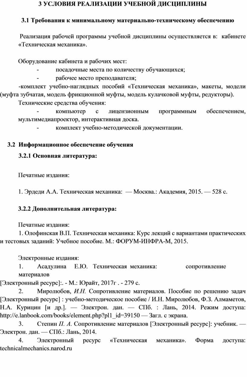 4. Электронный ресурс «Техническая механика». Форма доступа: technicalmechanics.narod.ru