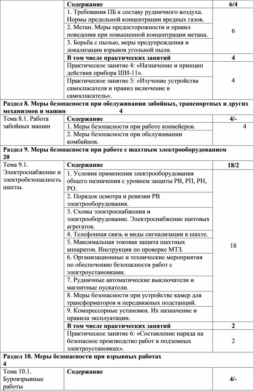 Самостоятельные работы 1. Шум и шумовые нагрузки. 2 2. Метеорологические и климатические условия в горных выработках. 2 3. Требования правил безопасности к электрическим проводкам. 2 4. Дополнительные требования по проведению работ в электроустановках для шахт опасных по газу. 2 5. Противопожарные водоемы. 2 |