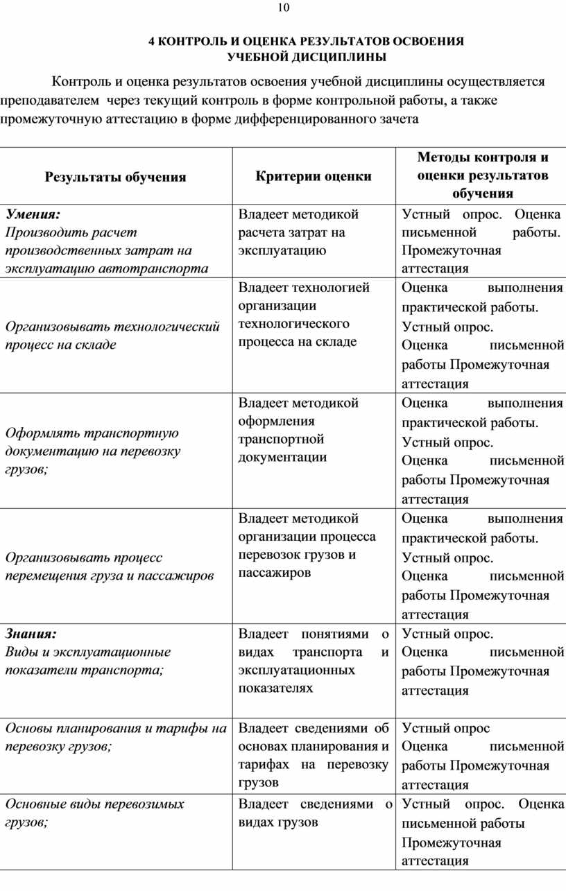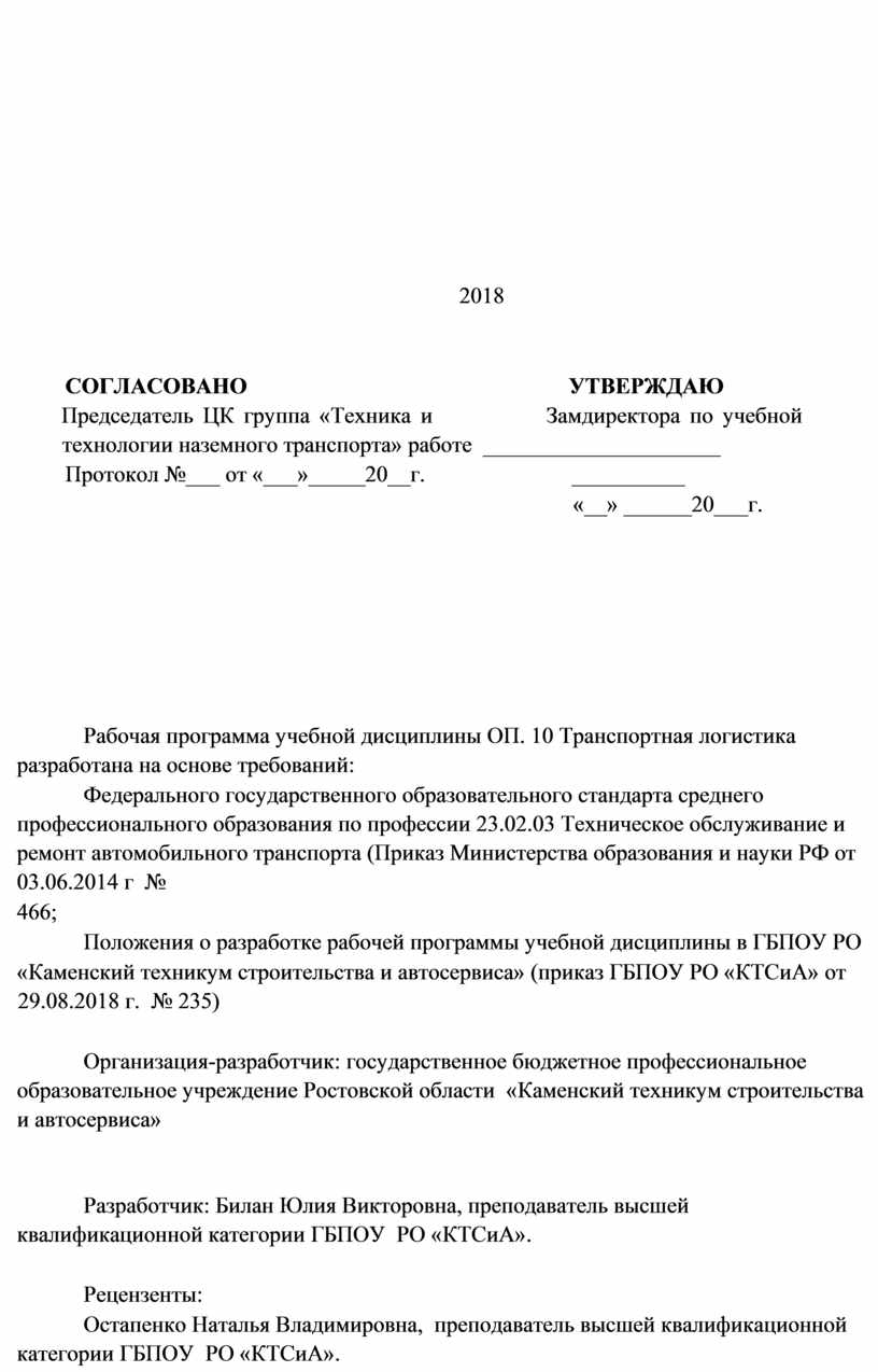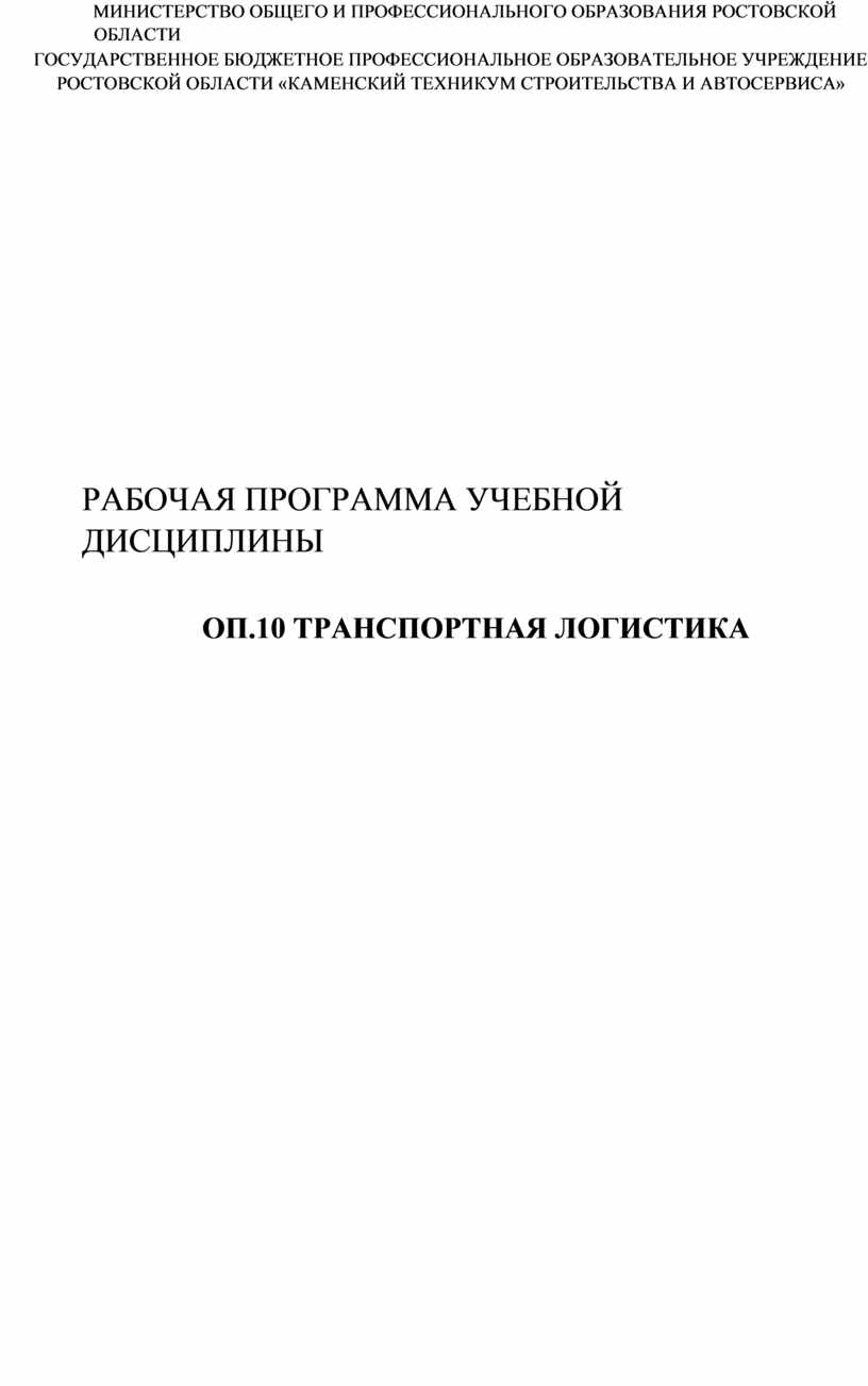 ОП.10 ТРАНСПОРТНАЯ ЛОГИСТИКА 1.1 Место учебной дисциплины в структуре основной профессиональной образовательной программы: дисциплина входит в общепрофессиональный цикл ППССЗ (Реализуется за счет часов вариативной части).