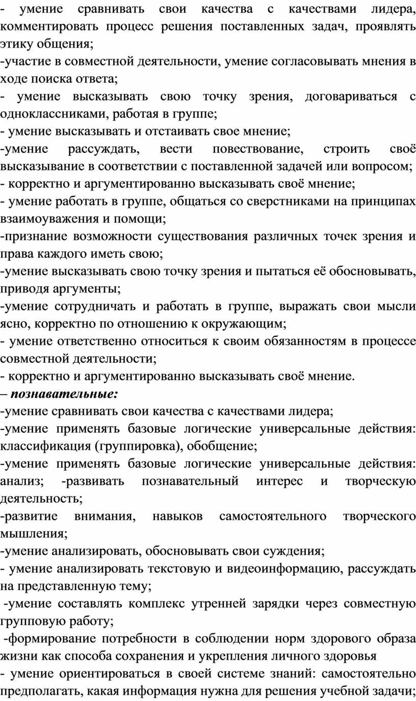 - умение сравнивать свои качества с качествами лидера, комментировать процесс решения поставленных задач, проявлять этику общения;