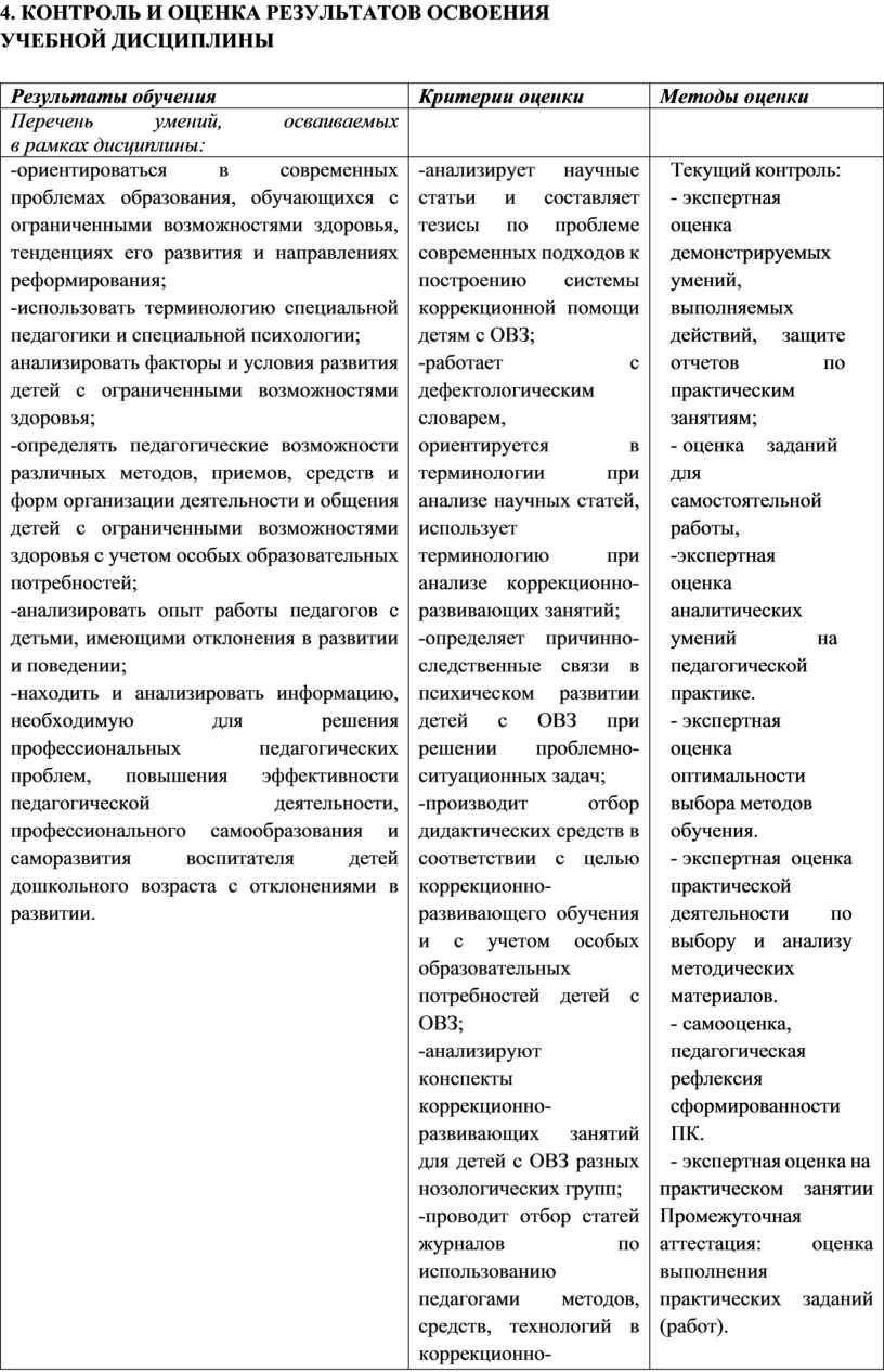 4. КОНТРОЛЬ И ОЦЕНКА РЕЗУЛЬТАТОВ ОСВОЕНИЯ