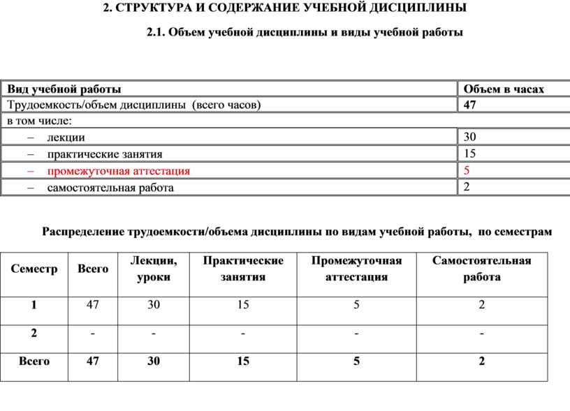 2. СТРУКТУРА И СОДЕРЖАНИЕ УЧЕБНОЙ ДИСЦИПЛИНЫ