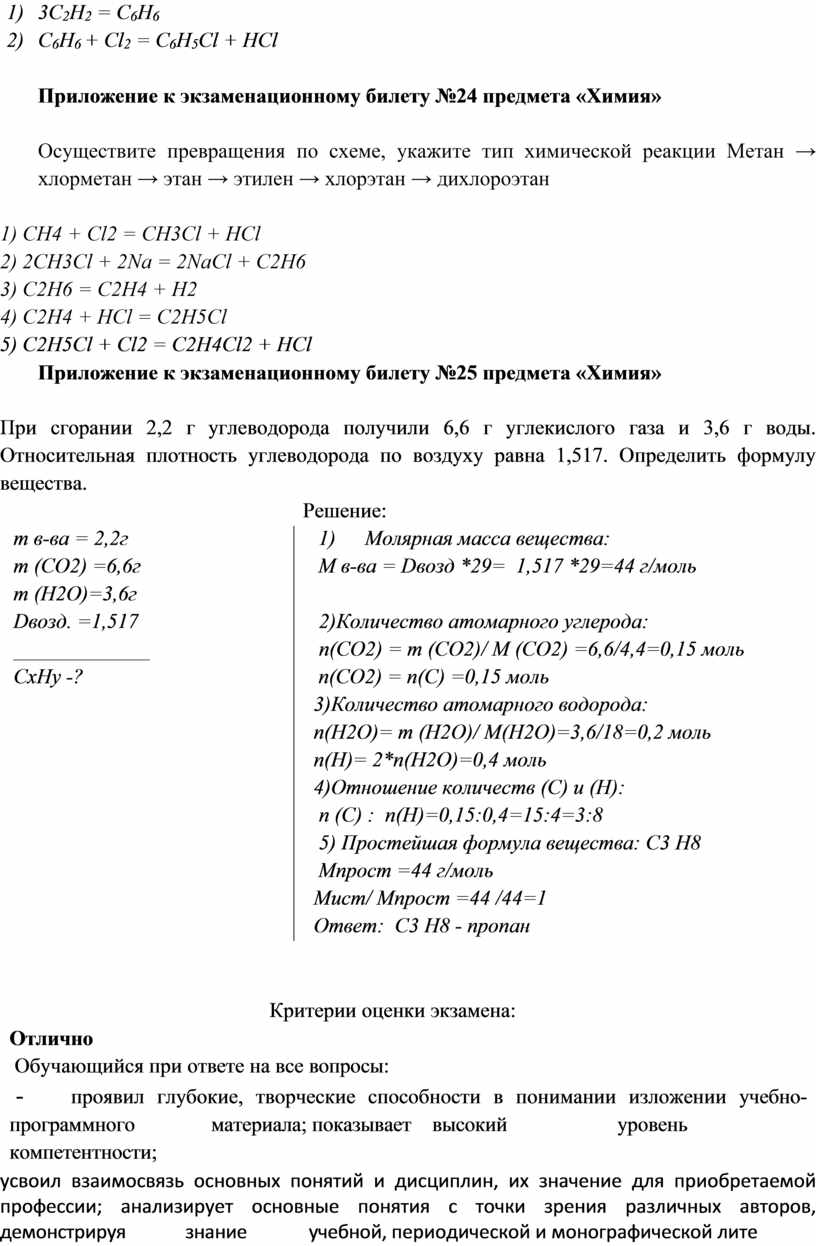Приложение к экзаменационному билету №22 предмета «Химия»