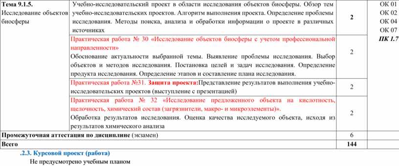 развитии ОК 1; ОК 2; ОК 4; ОК 7 и ПК, представленных
