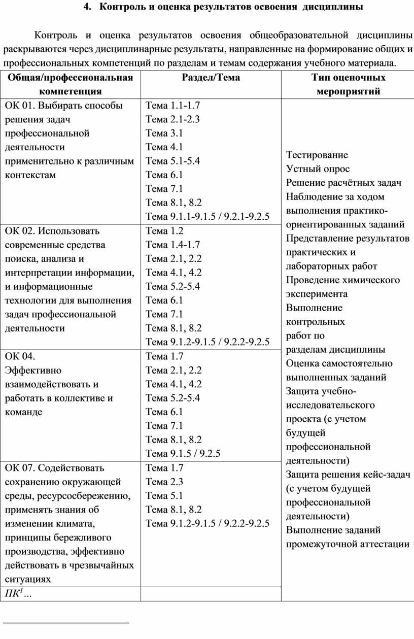 значение общеобразовательная дисциплина «Химия» имеет при формировании и
