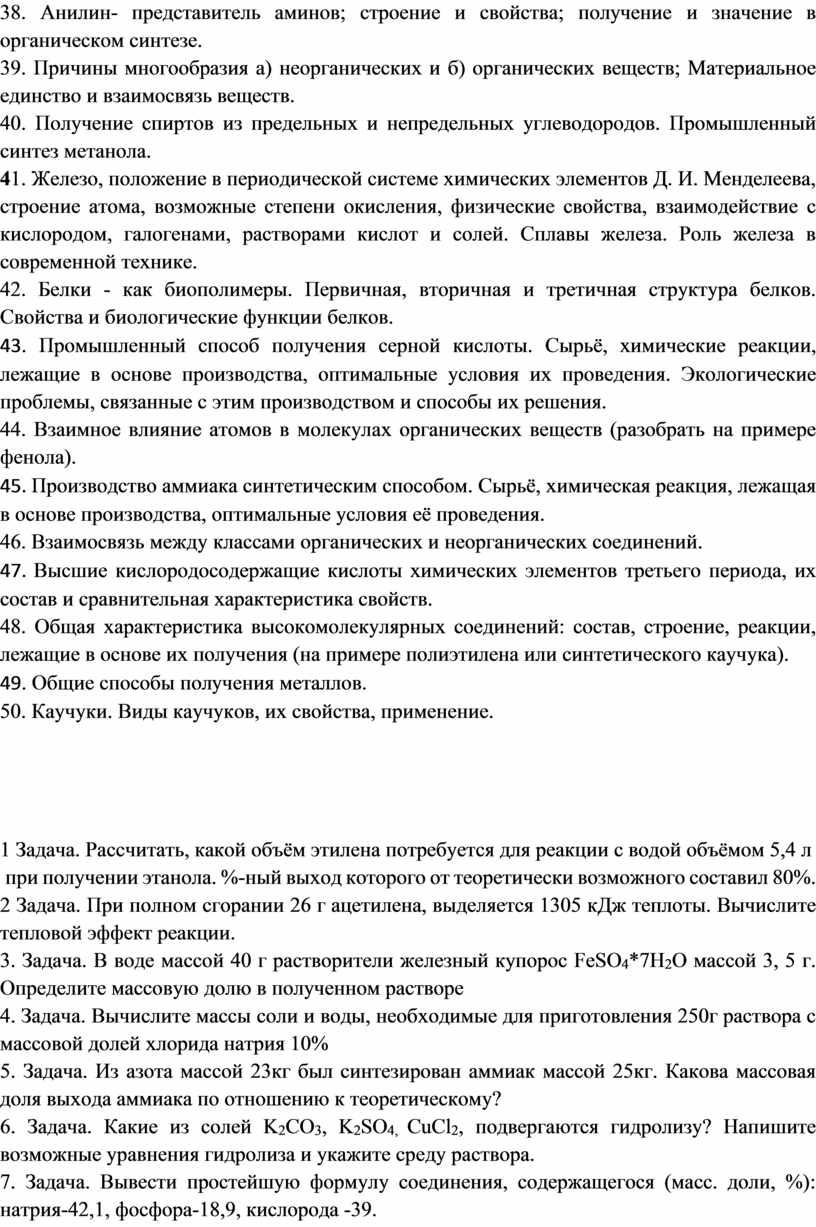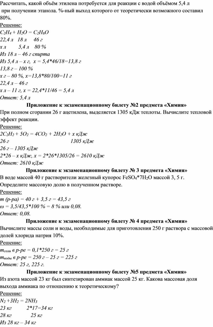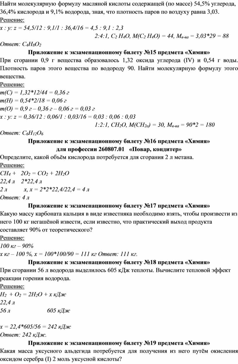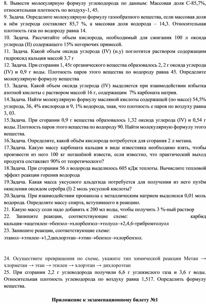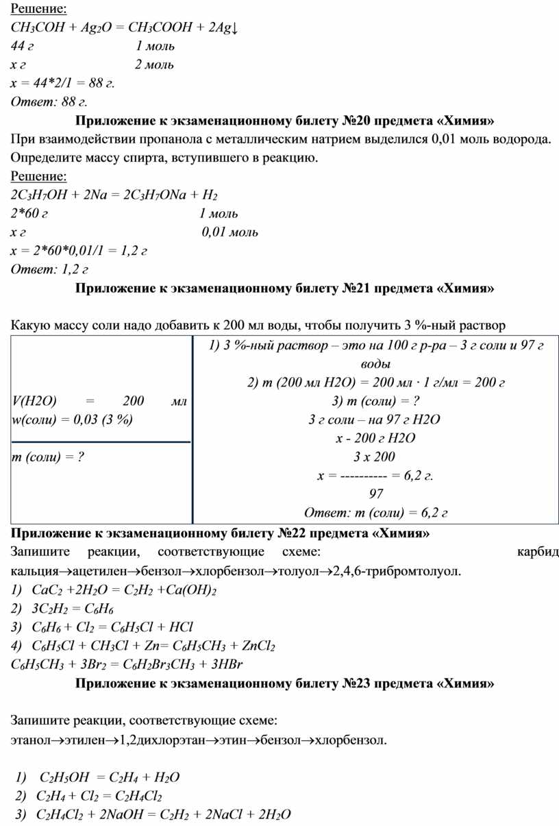 Приложение к экзаменационному билету №20 предмета «Химия»