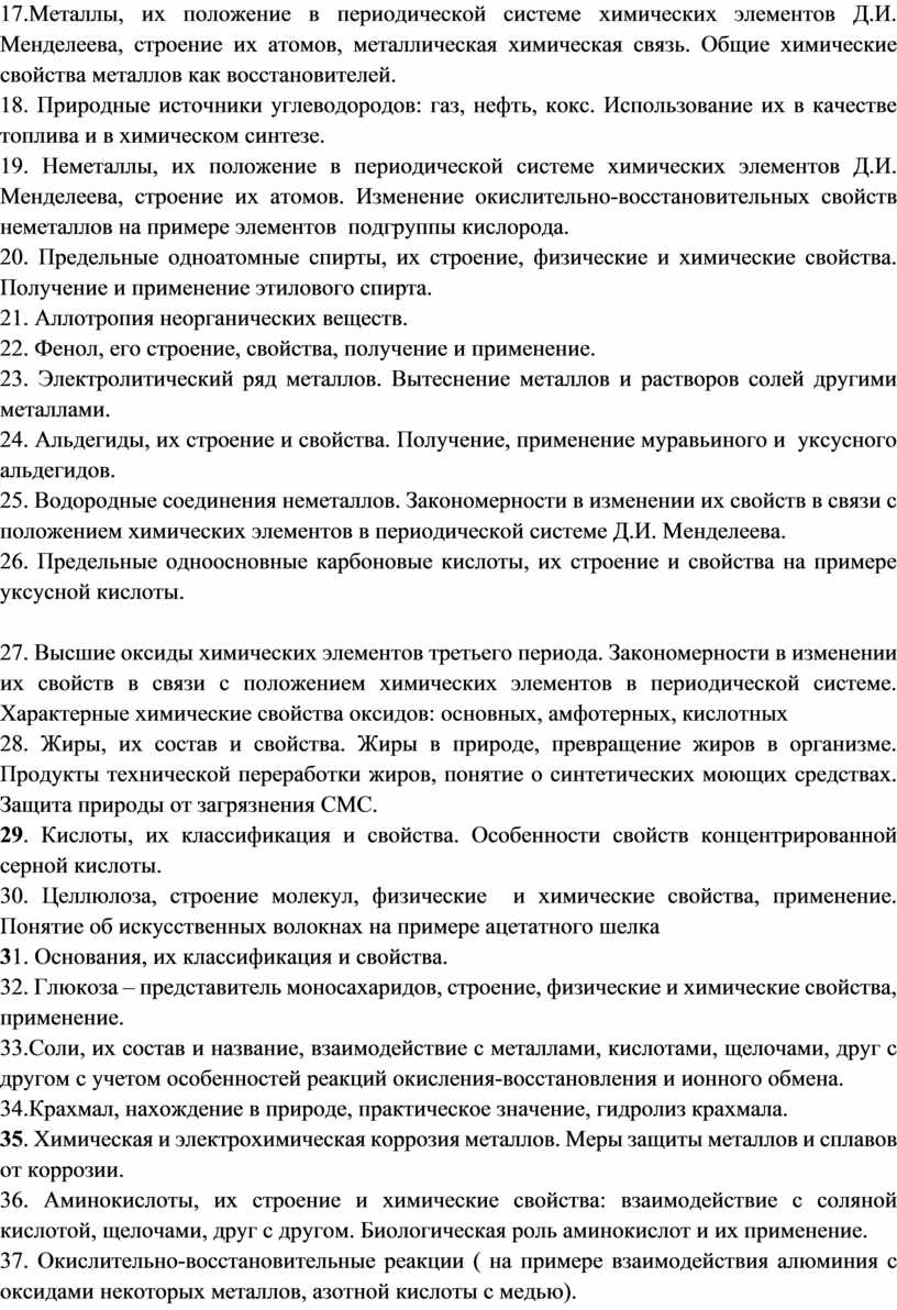 Приложение к экзаменационному билету №17 предмета «Химия»