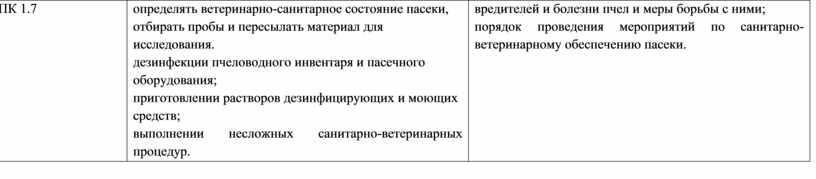 вредителей и болезни пчел и меры борьбы с ними; порядок проведения мероприятий по санитарно-ветеринарному обеспечению пасеки. |