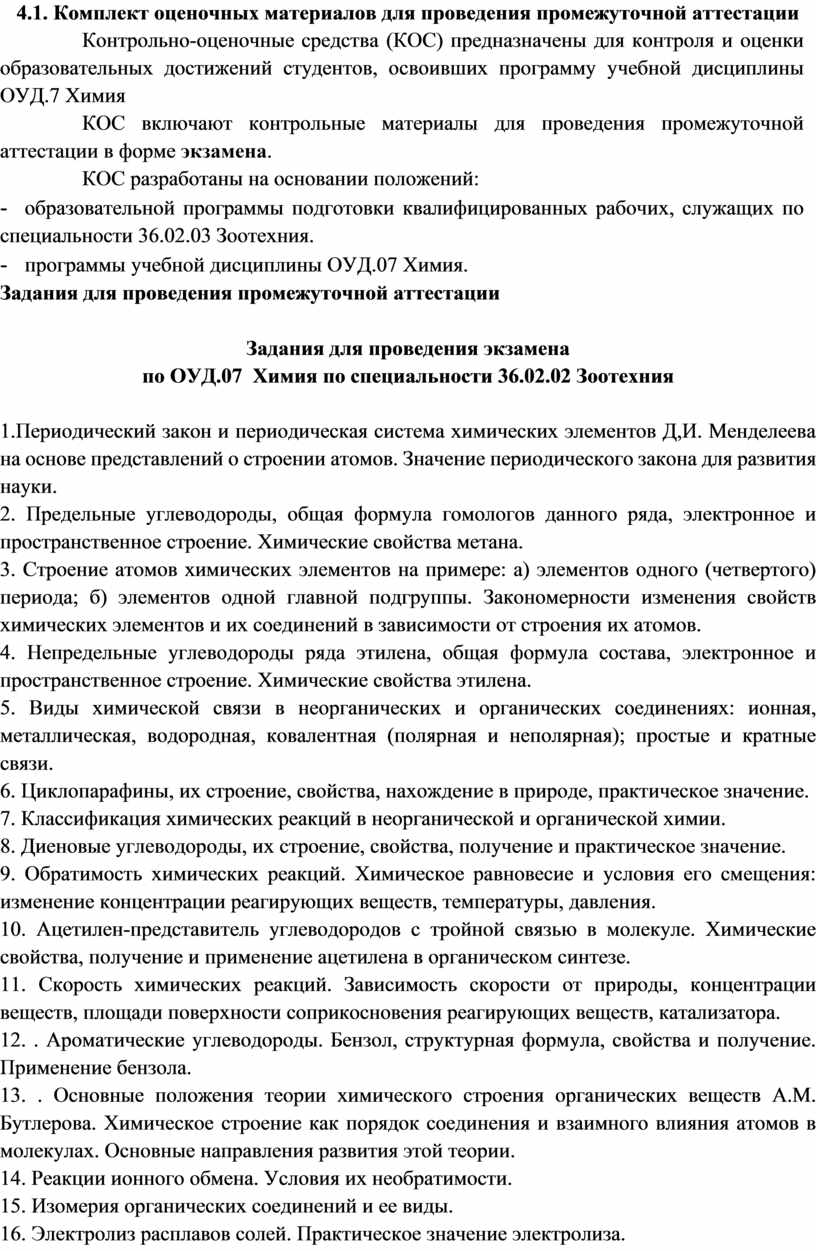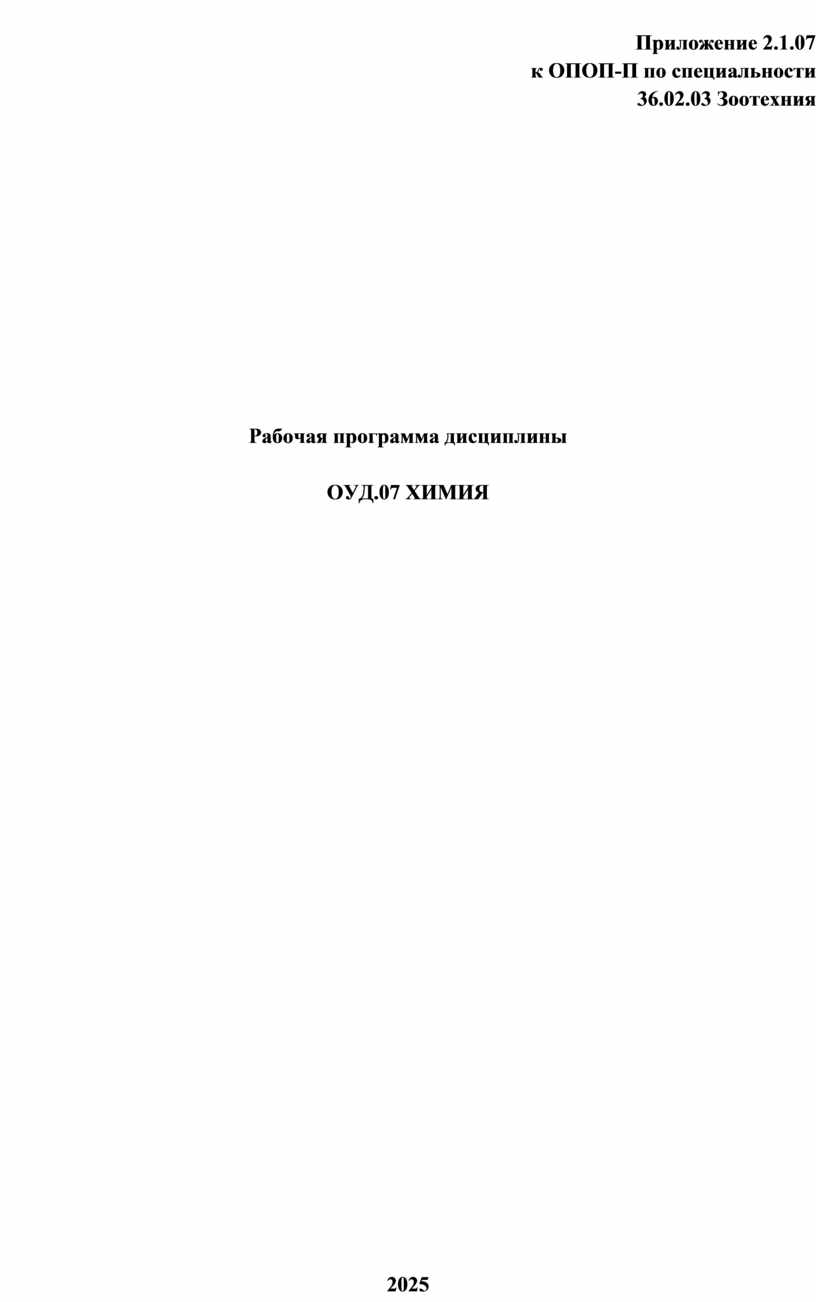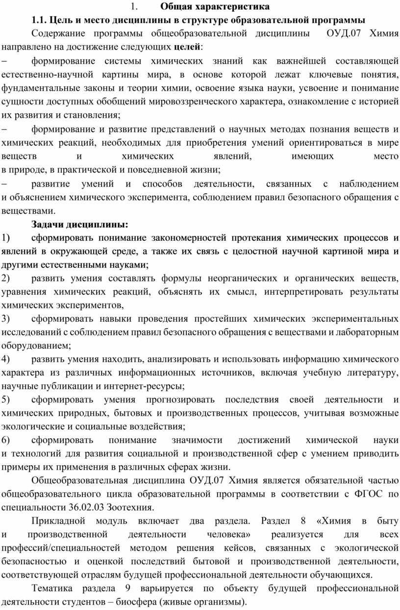Общеобразовательная дисциплина ОУД.07 Химия является обязательной частью общеобразовательного цикла образовательной программы в соответствии с ФГОС по специальности 36.02.03 Зоотехния.