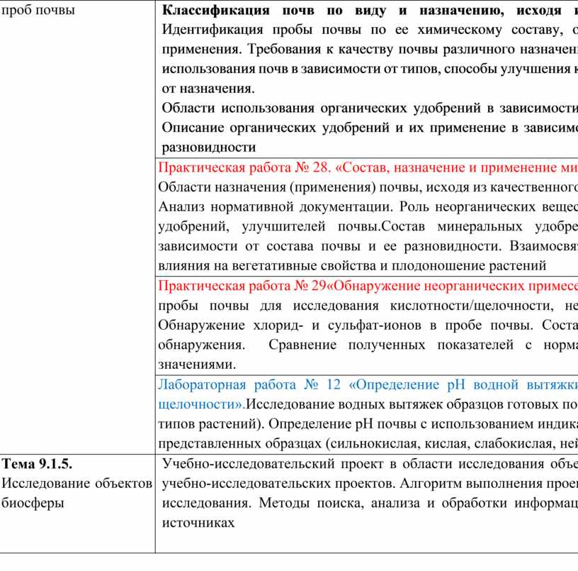 Тематика раздела 9 варьируется по объекту будущей профессиональной деятельности студентов – биосфера (живые организмы).