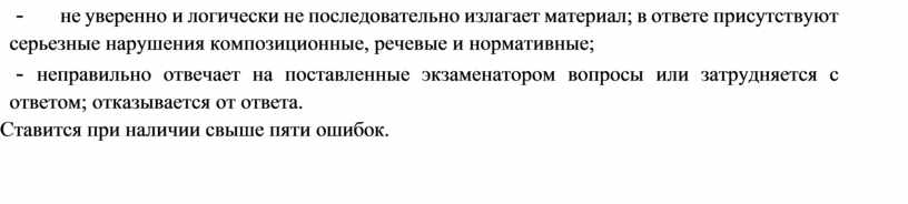 - не уверенно и логически не последовательно излагает материал; в ответе присутствуют серьезные нарушения композиционные, речевые и нормативные;