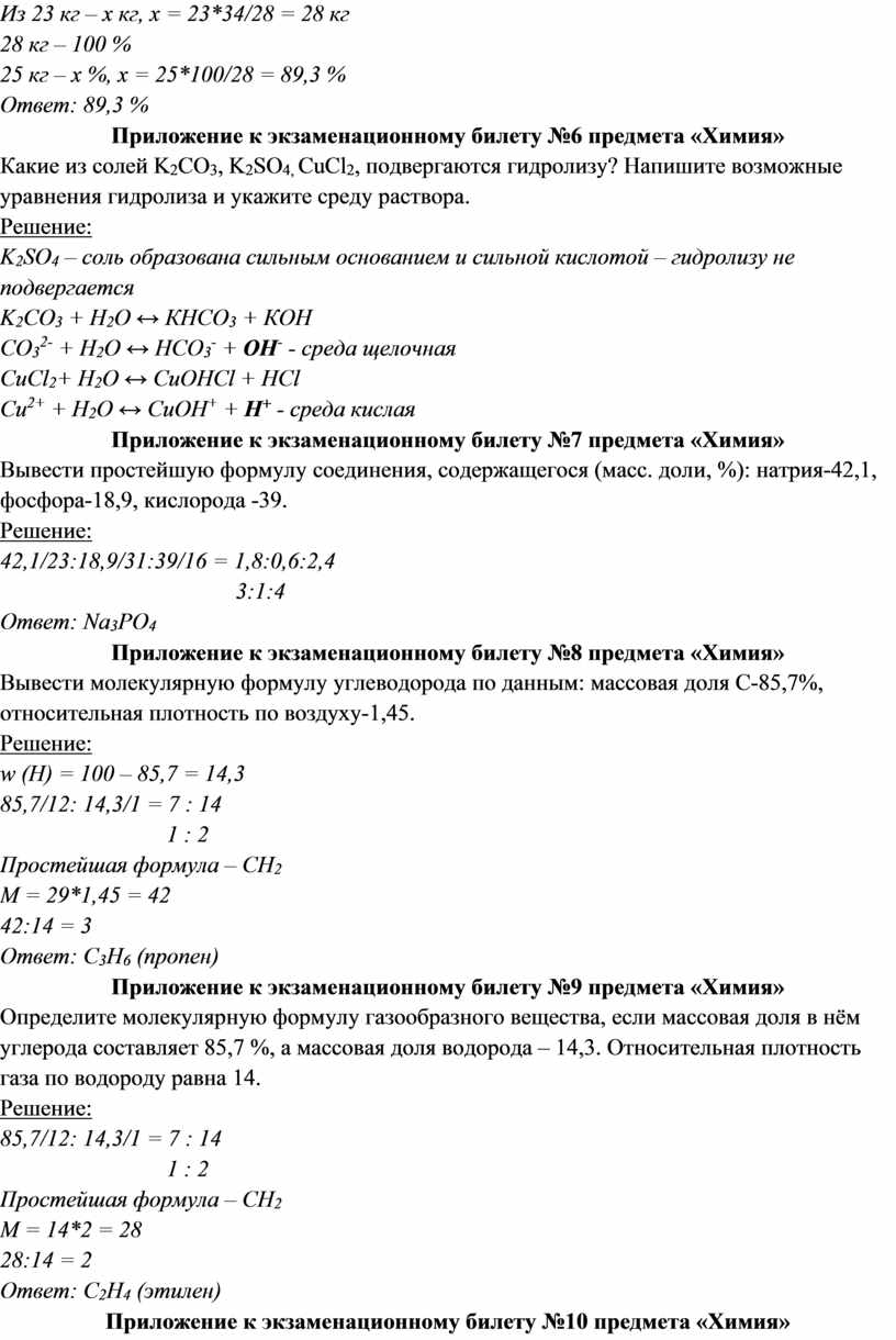 Приложение к экзаменационному билету №23 предмета «Химия»
