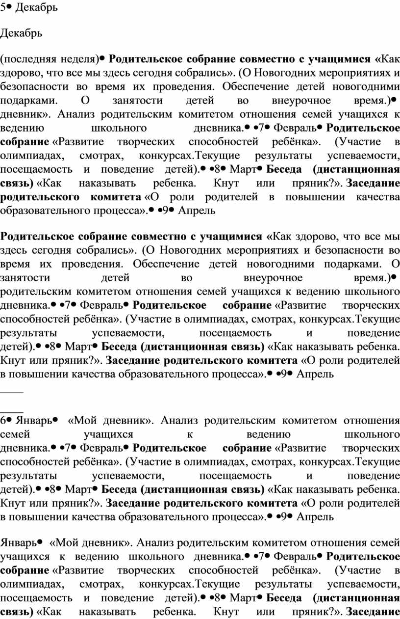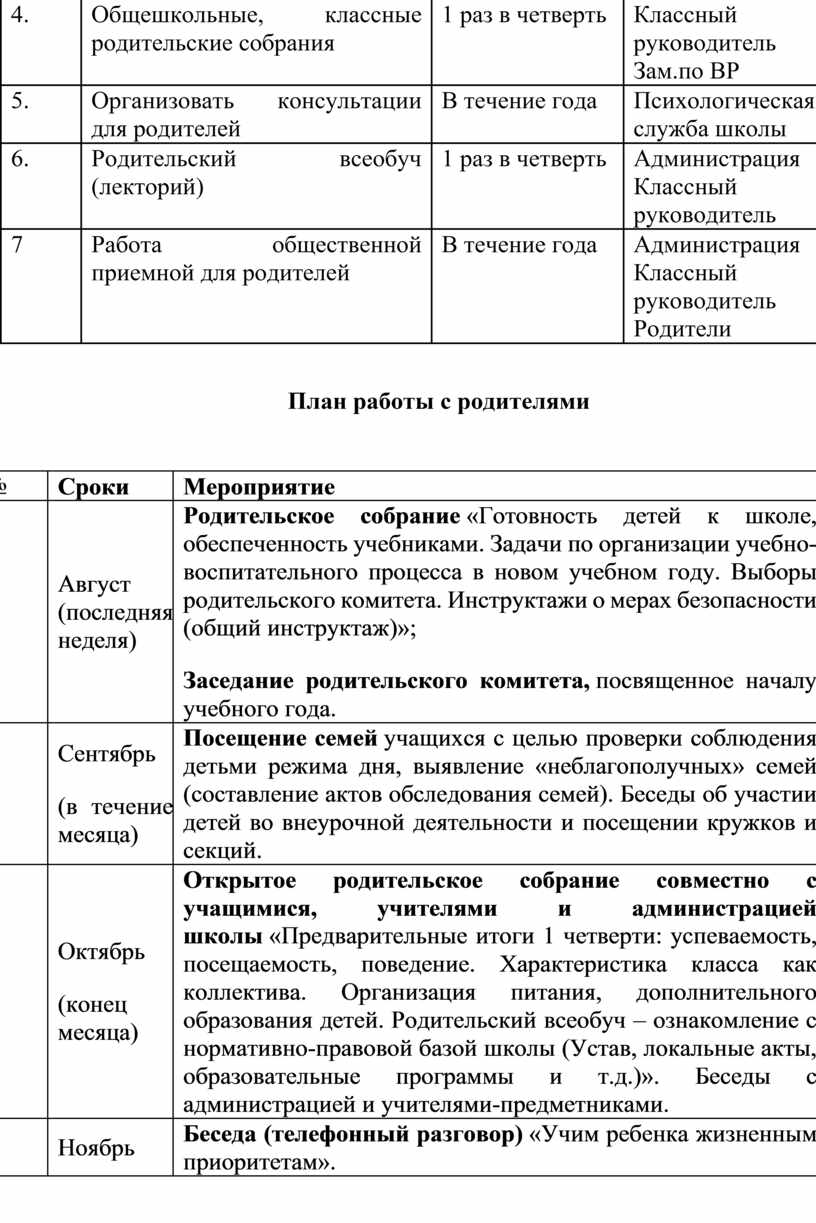 План работы с родителями