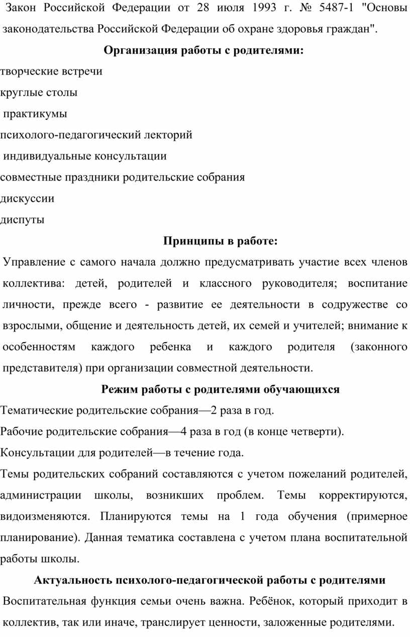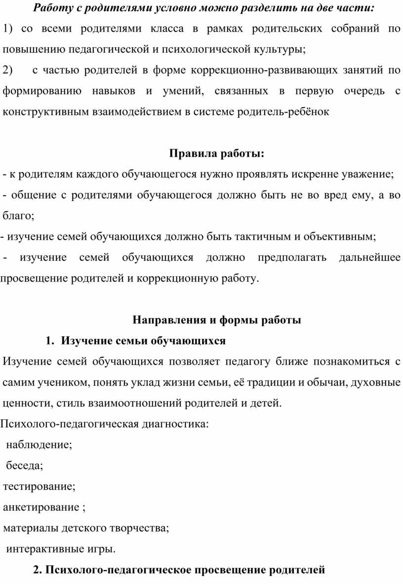 Работу с родителями условно можно разделить на две части: