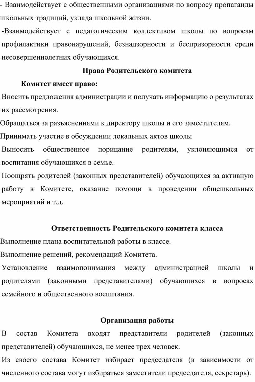 Права Родительского комитета