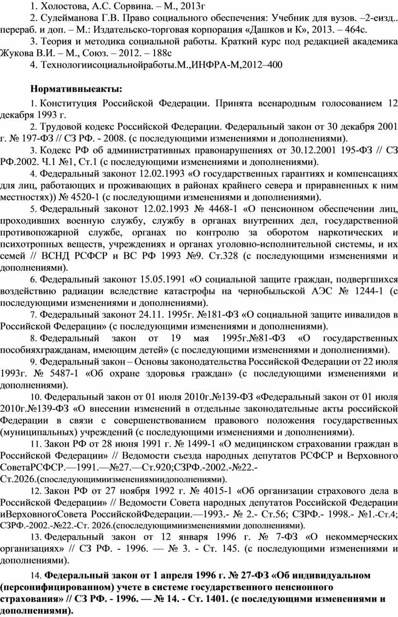 15. Федеральный законот 24.11. 1995г. №181-ФЗ «О социальной защите инвалидов в Российской Федерации» (с последующими изменениями и дополнениями).